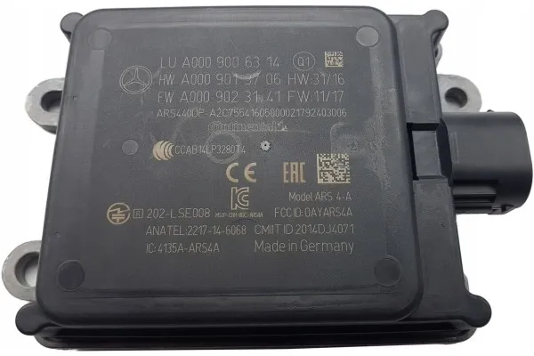 Sensor radar original para sistemas Distronic de Mercedes-Benz. Compatible con modelos A-177 (W177), S-222 (W222), CL-217 (W217), E-238 (W238), CLS-257 (W257), E-213 (W213) y C-205 (W205).